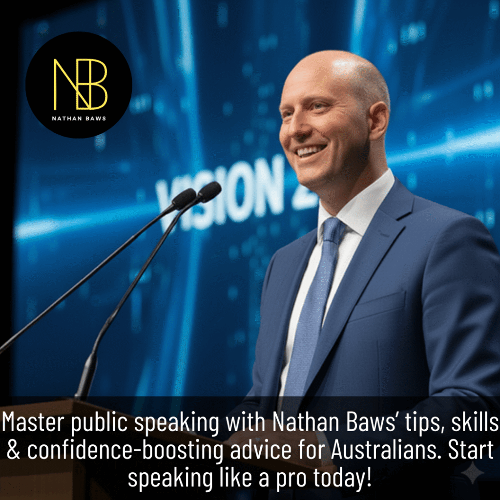 Introduction Nervous about speaking in public? You’re not alone. In fact, surveys show most people rate it as one of their top fears right up there with spiders and tax audits. But here’s the good news – public speaking is a skill you can learn. You don’t have to be born with a booming voice or natural stage presence. Bit by bit, with the right techniques and some practice, you can go from avoiding the microphone to speaking with confidence. I’m Nathan Baws. I speak at events all over Australia – in Perth boardrooms, Melbourne community halls, even over Zoom calls with teams in the outback. This guide will give you a simple roadmap: what public speaking is, why it matters, and some tips to help your next talk land with your audience. Let’s get into it. What Public Speaking Is All About Speaking in public is more than just standing in front of a group and saying words. Public speaking isn’t just talking-it’s the key to getting your thoughts out of your head and into someone else’s. When you learn to speak clearly, with a bit of fire in your voice, you can connect with people in ways that stick. Whether it’s a 10-minute presentation at work or a keynote at a conference, the goal is the same: to get your message across in a way people actually remember. What are public speaking topics I used to think picking a topic for a speech was about finding something “impressive,” but I’ve learned it’s really about what lights you up and resonates with the people listening. A topic can be anything-literally any idea you want to share. There’s no “perfect” topic. What matters is how well it connects with your audience and whether it sparks interest or inspires action. Here are some great options for presentation topics: The best topic is the one that feels personal to you. How public speaking is done Public speaking used to make my stomach churn, but I’ve learned it’s just about being yourself and following a few steps that actually work. Here’s the truth: you’ve got to practice until it feels like second nature. Where public speaking is done usually I used to think public speaking was for grand stages, but it’s everywhere ideas are shared. I’ve pitched plans in cramped office rooms, my voice shaky but convincing. I’ve spoken at community centers, rallying neighbors for a cause. I’ve led Zoom calls from home, guiding a team despite spotty Wi-Fi. Conferences, schools, even weddings-giving a toast-or small parent meetings where I spoke up, all count. Book clubs, church groups, even team huddles are chances to practice. Every time, I’ve gotten better at steadying my nerves and connecting. Can public speaking be a hobby Absolutely – public speaking can be a fun and fulfilling hobby. Many Australians join Toastmasters clubs, community debate teams, or storytelling nights just to practise in a friendly, low-pressure environment. Over time, your confidence grows, and soon speaking in front of strangers can feel as natural as talking to mates at the pub. Why Public Speaking Is Important Public speaking isn’t just for politicians, influencers, or corporate executives. It’s a skill that opens doors – personally and professionally. The importance of public speaking skills cannot be overstated: it helps you express yourself clearly, earn trust, and influence people in positive ways. Why public speaking matters today In today’s world full of distractions – phones buzzing, social media feeds updating every second – being able to deliver a clear message is a superpower. People notice when someone can cut through the noise and hold attention. This is why presentation skills matter in 2025 more than ever. Whether online or in person, being heard and understood can set you apart from the competition. How public speaking boost your confidence Confidence is built by doing. Every time you speak – at a small team meeting or a conference in, you prove to yourself that you can handle it. The more you do it, the more natural it feels. Soon, the shaky hands and racing heartbeat turn into excitement and presence. You stop worrying about “getting through it” and start enjoying the connection with your audience. Why public speaking is an art Public speaking is an art form. It combines creativity, emotion, and structure to turn ordinary words into something memorable. Think of it like painting – your words are brushstrokes that create a mental picture for your audience. When done well, they don’t just hear your message; they feel it. They leave remembering how you made them think, laugh, or even take action. That’s the power of the art of speaking. Skills You Need to Master Great public speakers aren’t just born that way – they build key skills over time. What public speaking skills do you need If you want to get better at speaking in public, there are a handful of skills that really make a difference. With enough practice, all of this starts to come together on its own. You’ll sound clearer, your stories will flow better, and your body language won’t feel forced. Why public speaking skills are important These skills make you a better communicator, help you build trust, and position you as a leader. People are more likely to respect and follow someone who can speak clearly and confidently, whether in a workplace or at a community event. What are the 5 pillars of public speaking When people talk about public speaking, they often mention five main “pillars.” Think of them like the legs of a table – miss one and the whole thing wobbles. Put all five together and you get a speech people actually want to hear. Tips to Improve Your Speaking Tips when public speaking Public speaking feels scary at first, but these little steps take the edge off. What to do when public speaking Doing these small things during your talk shows professionalism and builds trust with your audience. When public speaking: Arrive